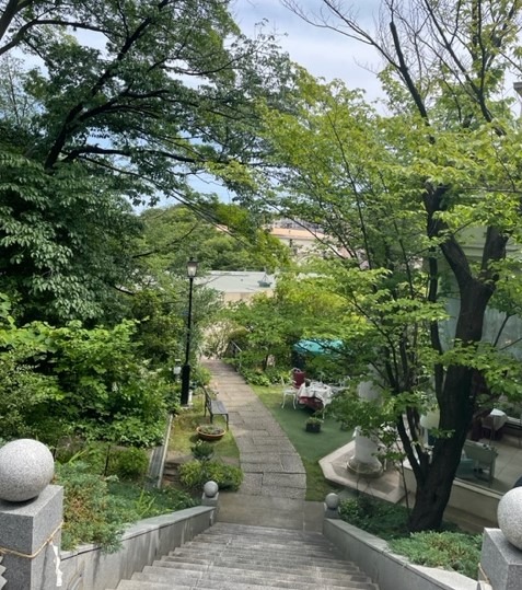 そして礼拝堂の横には緑に囲まれた星のサロンがあります。
