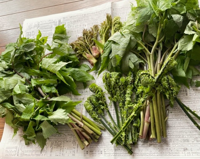 タラの芽、こごみ、しどけ。しどけは東京ではあまり売ってないから知らない人が多いかな、苦味があって独特の風味です。
